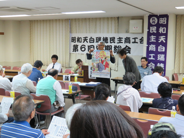 中小業者の減少が続く中、会としての運動を強化し、大きな民商を作ろうと永年がんばってきましたが、民商を守り発展させていくには再編し、反転攻勢を目指し役員の意思統一と事務局の強化を行うことが必要と考え、平成23年に昭和瑞穂民商と天白民商が統合し、昭和天白瑞穂民商として新たな出発をしました。